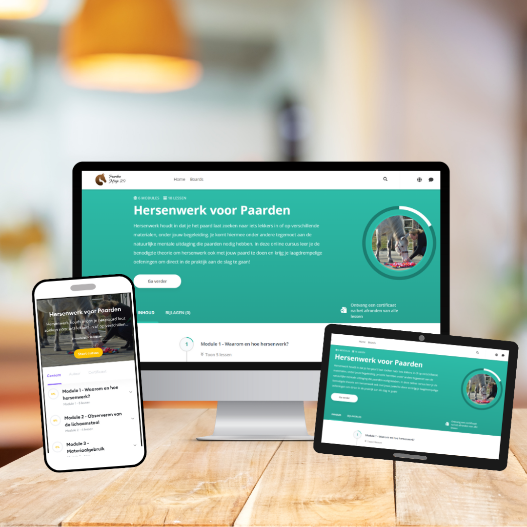 Onbeperkt toegang tot alle cursusmodules van de online basiscursus Hersenwerk voor Paarden en de maandelijkse live Q & A + opnames